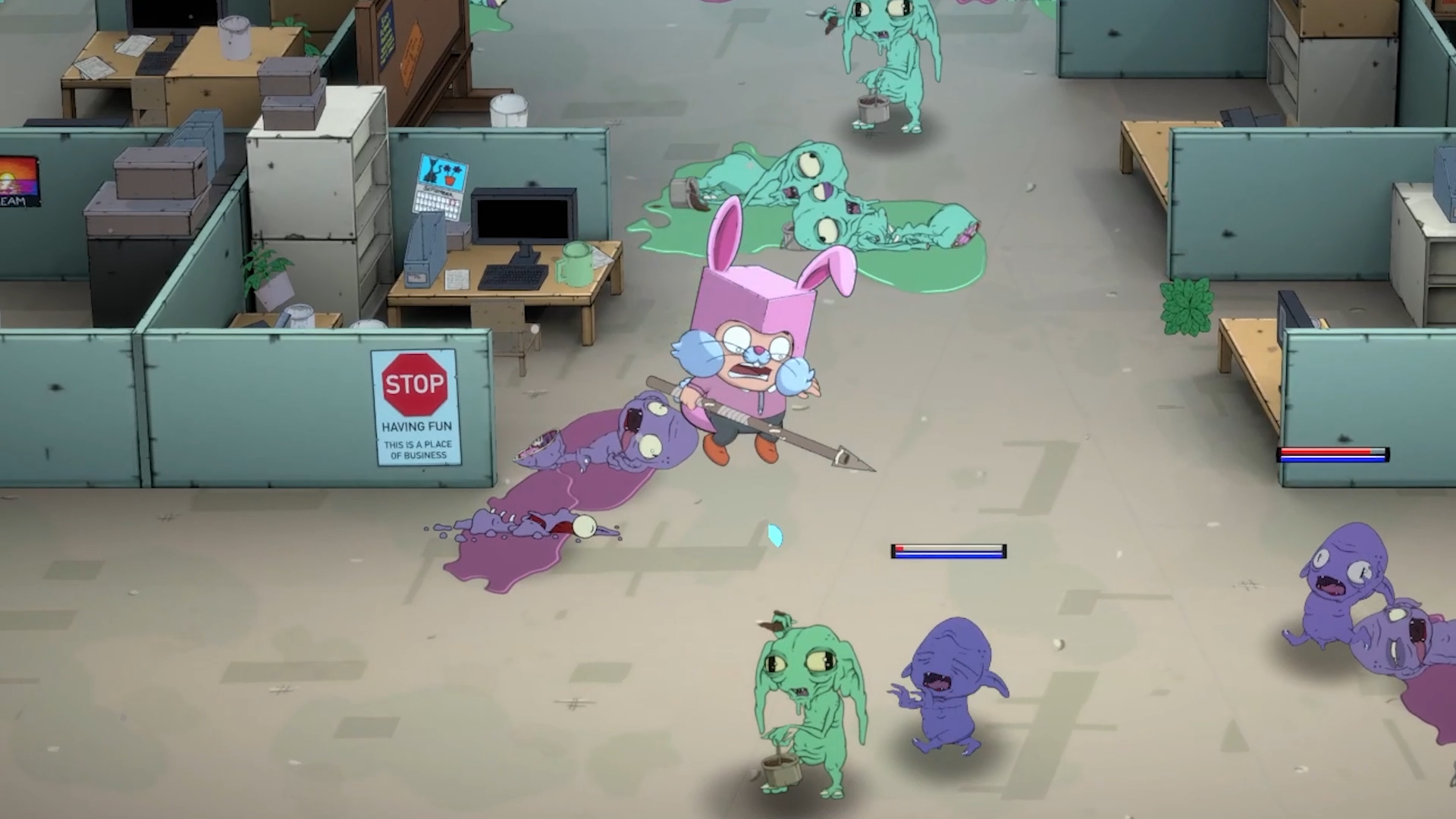 The demo premiered alongside a new trailer at The MIX Indie Fan Fest, highlighting the game’s frantic beat’em up combat, cardboard-wielding protagonist, and over-the-top office fantasy. Players can participate in three solo runs to face the game’s first boss, with progression carrying over between runs through unlockable weapons, upgrades, and cosmetic items. While the demo is currently solo-only, the full release will support local couch co-op.