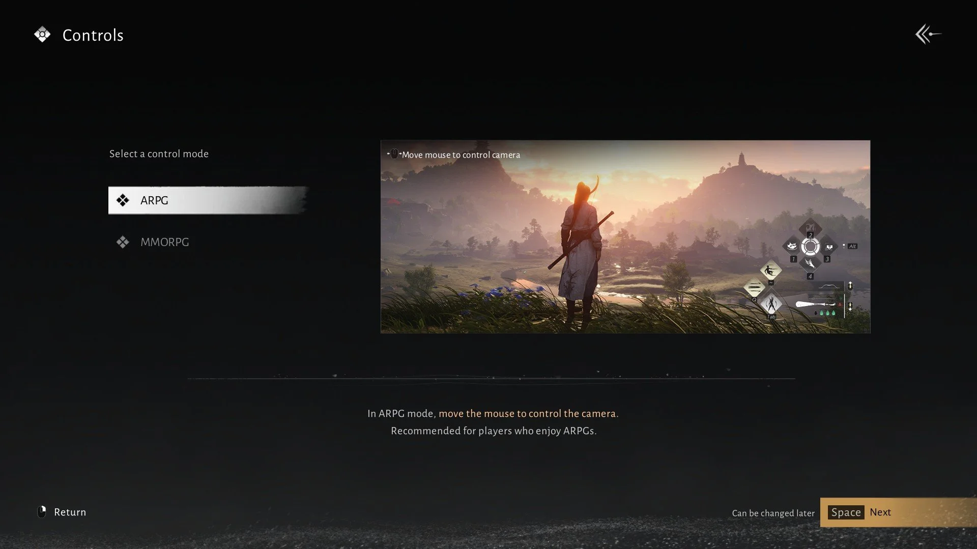 When you first log into the game, you are taken through steps to adjust the game to your playstyle: difficulty, ARPG vs MMORPG UI, etc. Then, it begins.