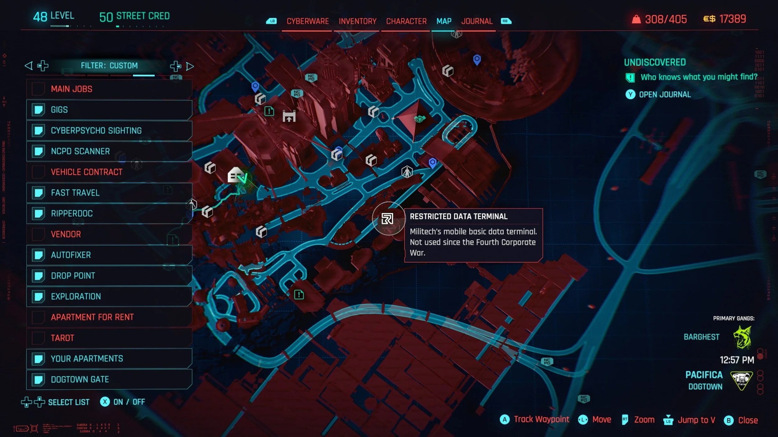 When you look at your map, locate Kress Street (your safehouse). There is a Drop Point icon below the Kress Street Fast Travel terminal, on a long, main road. Just a bit Northeast of that Drop Point is what looks like a bridge or overpass on your map. Go to that overpass. There is Barghest security patrolling out there. Go up the stairs and you’ll start to hear the beeping. Follow the sound to your left where there is some graffiti on the wall. The restricted data terminal is there.